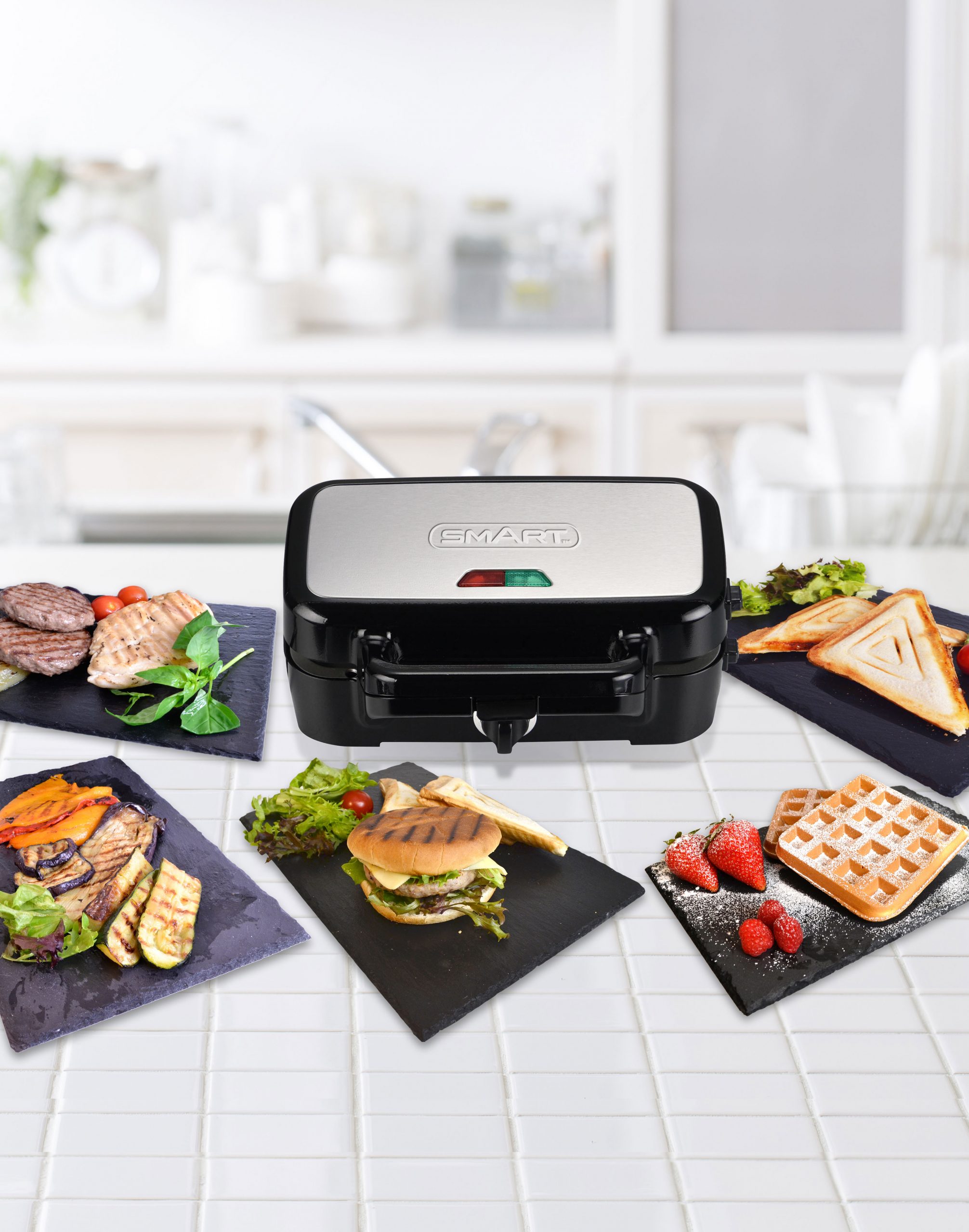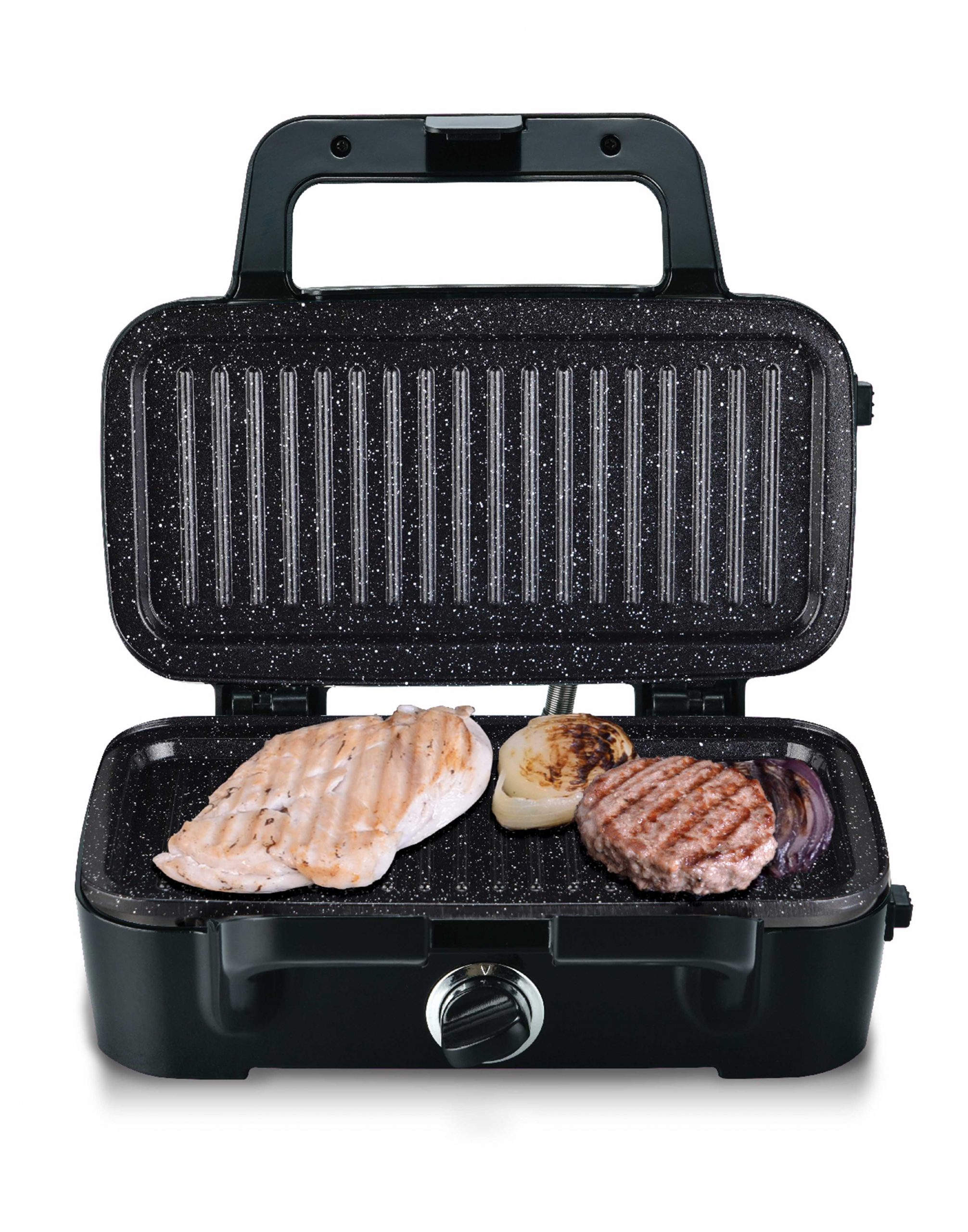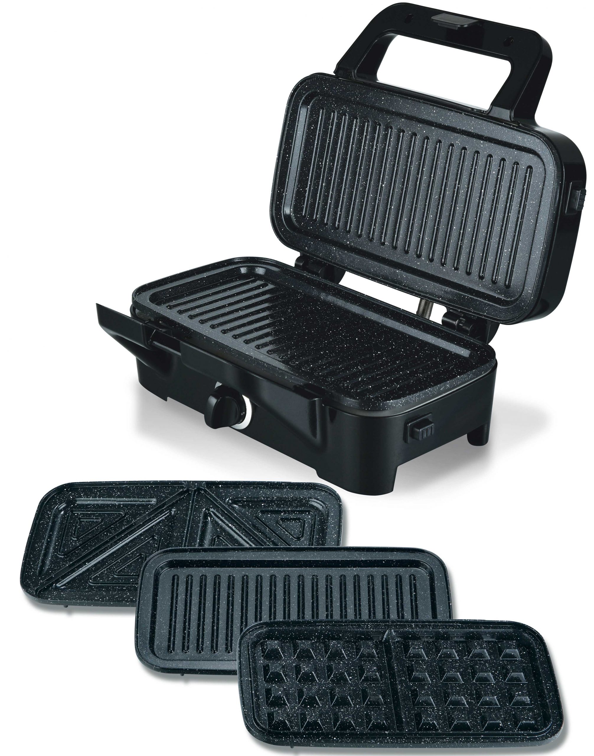 - Interchangeable ceramic plates to make perfect grill/panini, waffles, and sandwiches